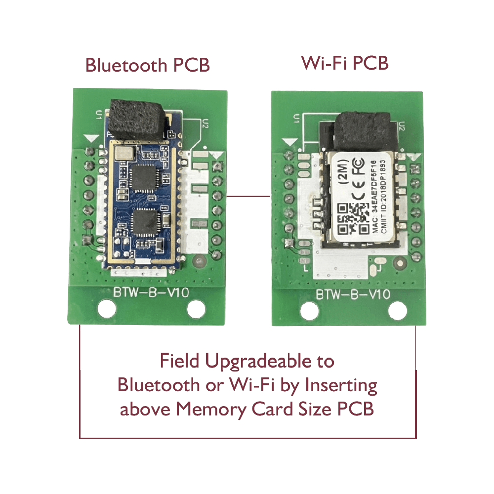 Upgradeable to Wi-Fi or bluetooth by a memory card size PCB